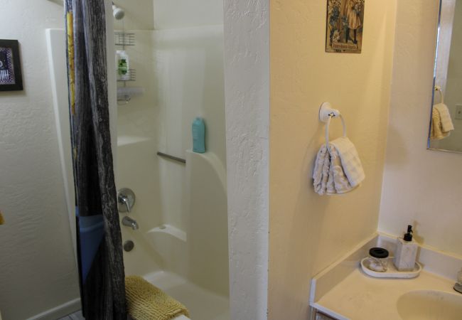 Bathroom: The full hall bath has been recently renovated with granite countertops, new faucets, and a shower/tub combination. All necessary linens are provided.
